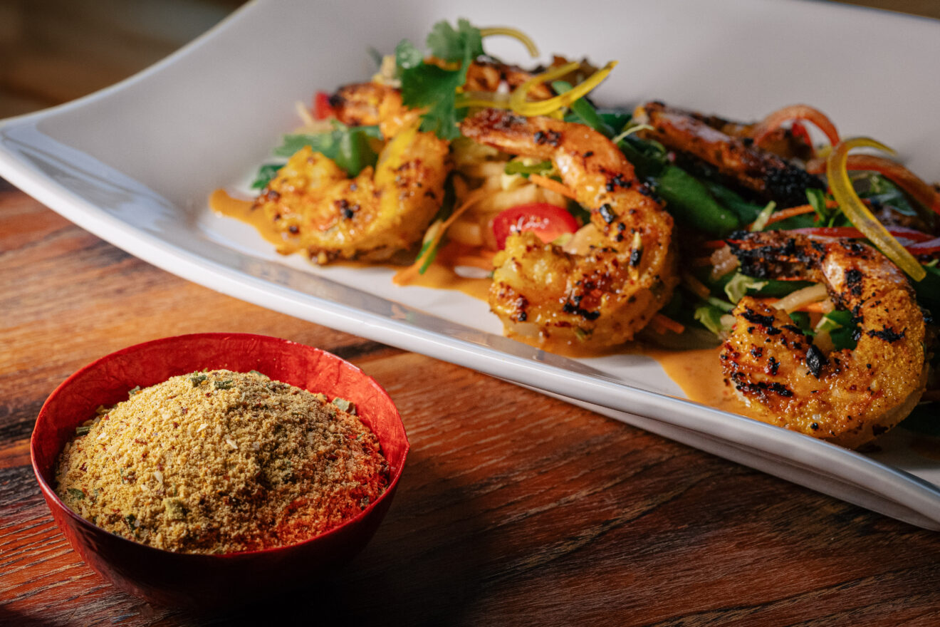 Mango Habanero Grilled Shrimp Skewer with Papaya Salad